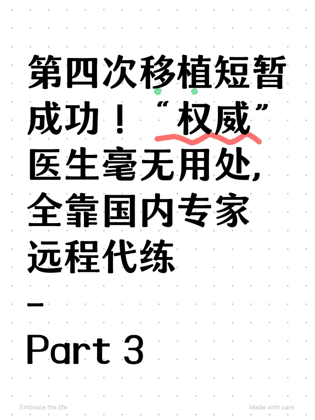 #ivf #试管婴儿 #加拿大ivf #权威医生 本人六篇长文,总字数4000+,就是为了尽量不要被断章取义,还原事情原貌,突出本意:1️⃣博主本人选择国外生活,就是家庭和睦,朋友关心,事业稳定;很少小事就发xhs来网络开庭,这次的发声和先生姐妹们仔细协商,权衡利弊,还是觉得作为女性想保护女性,避免更多的女性选择错误或浪费时间,消耗身体身体2️⃣太疼了,不愿意其他女性再经历不必要的疼痛3️⃣没有拉踩国内外医疗技术的想法,跟哪里都有好人坏人一样